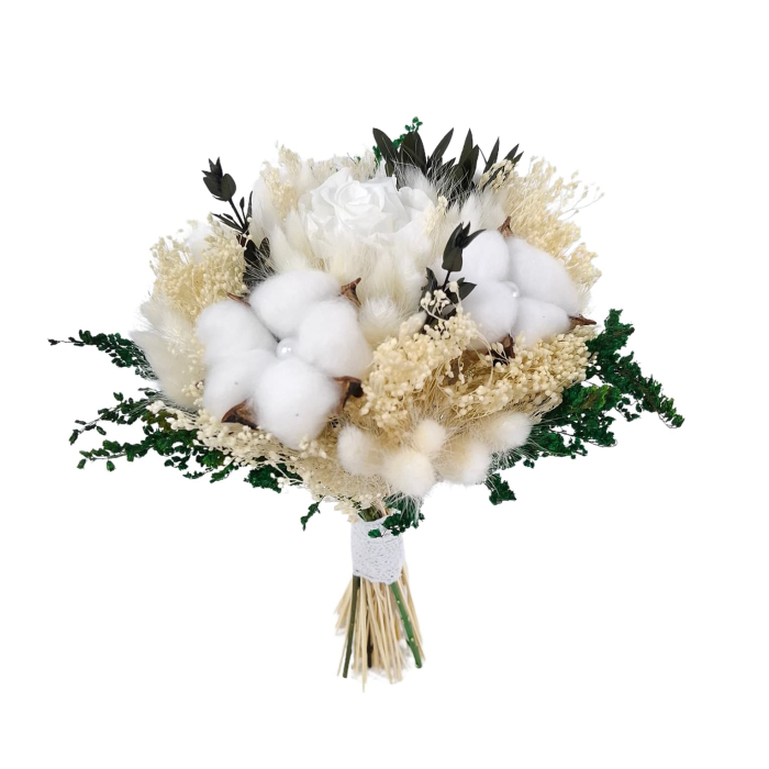 Acest buchet este creat special pentru a fi alături de tine în ziua evenimentului mult visat, rămânând o amintire prețioasă care rezistă ani la rând datorită florilor criogenate și uscate.