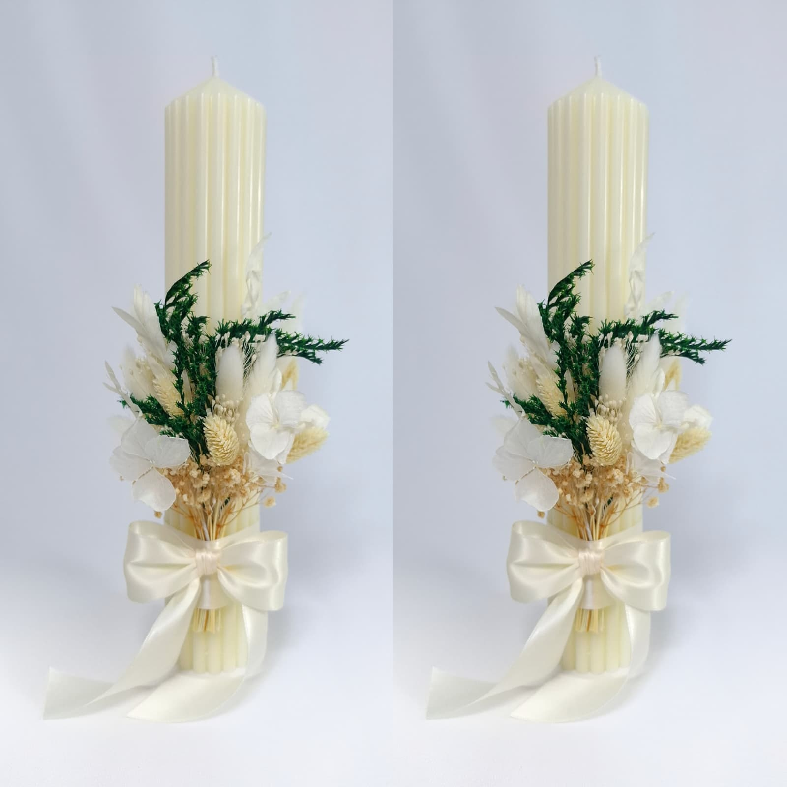 Lumanari nunta/cununie decorate cu flori criogenate si uscate, H35/D6 cm