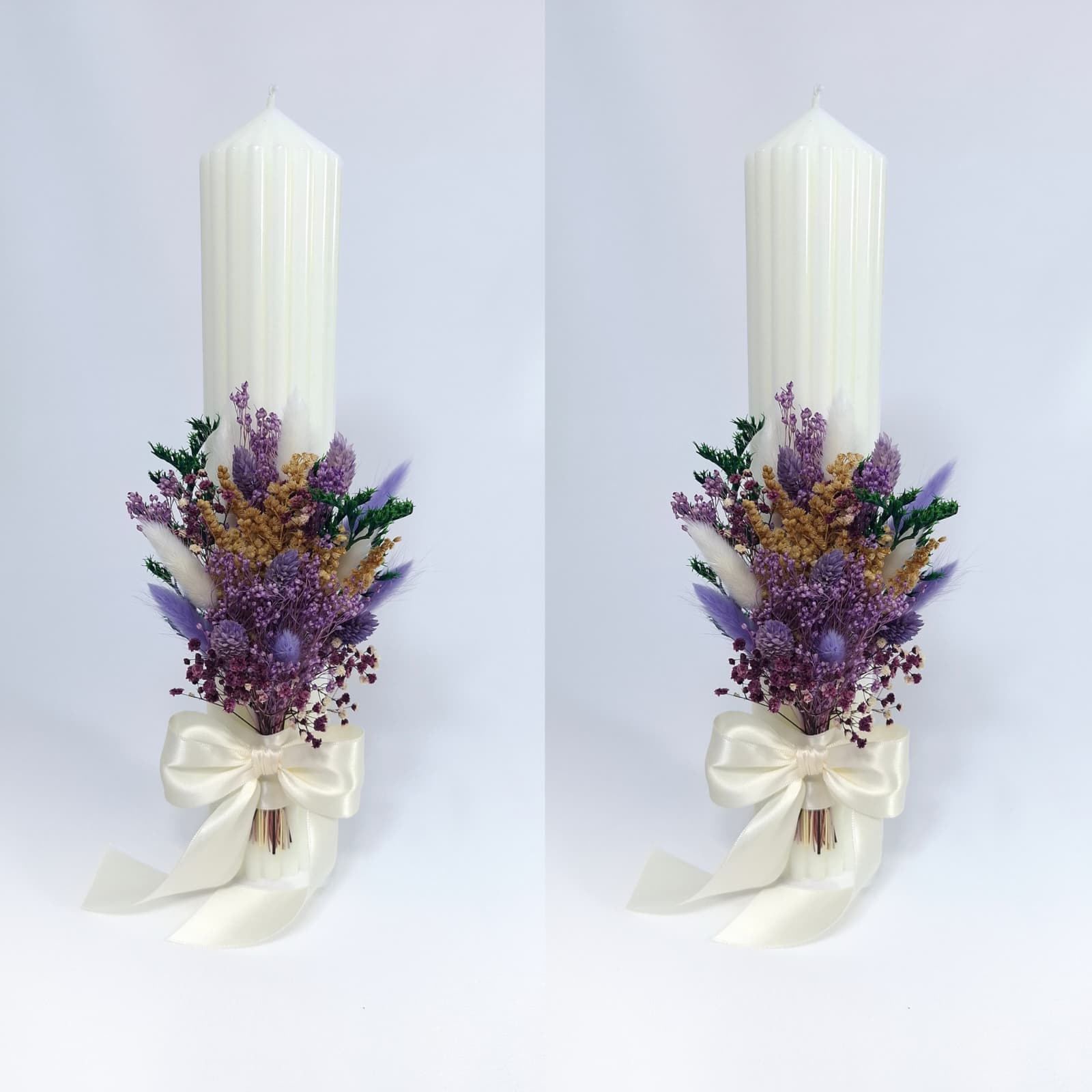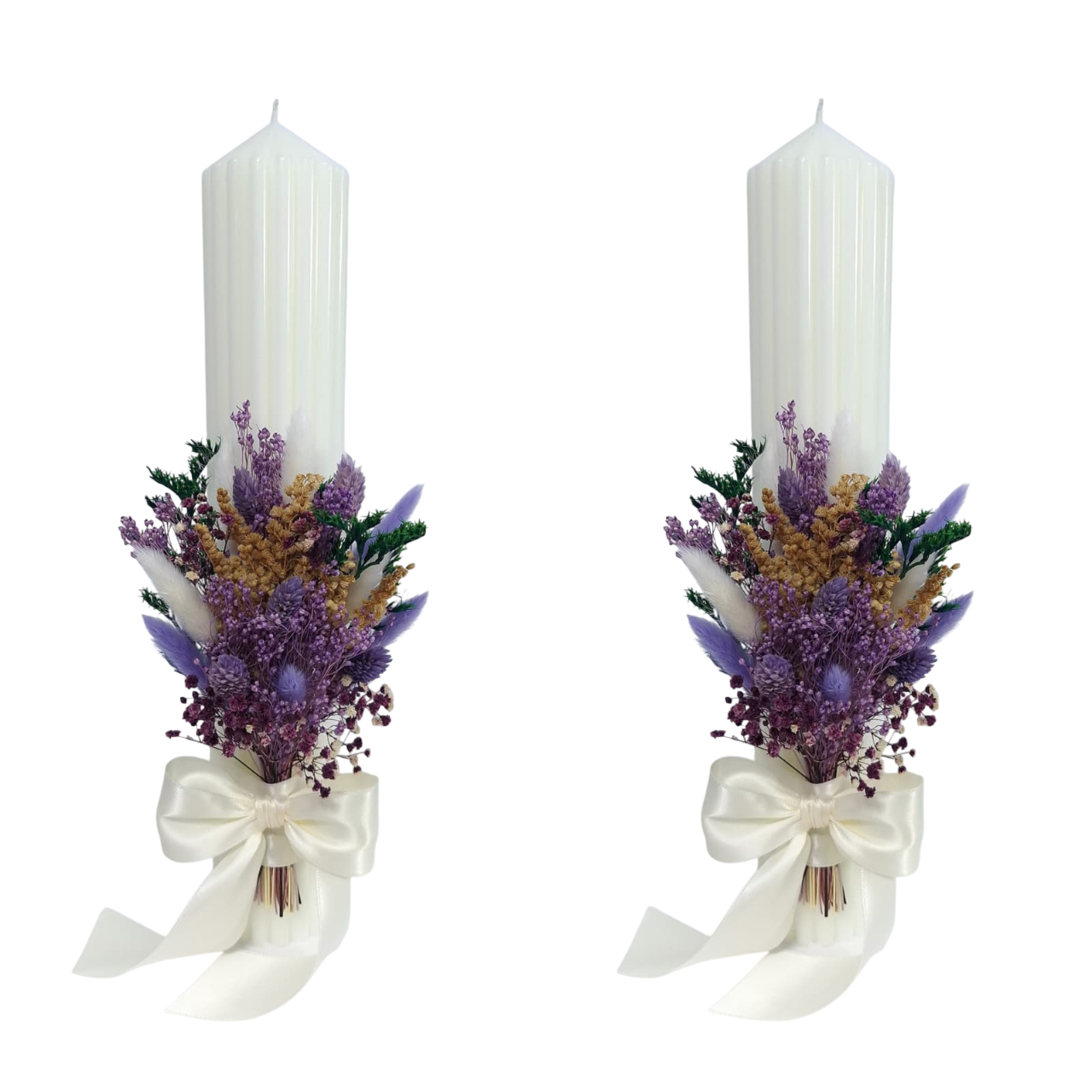 Lumanari nunta/cununie decorate cu flori criogenate si uscate, H35/D6.